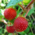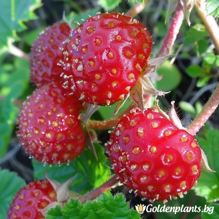 Плодовете на „Ягодова малина“ са кръстоска между малина и ягода. Овални, заострени в единия край с форма наподобяваща ягода, с наситено червен цвят и матова до лъскава повърхност. На вкус повече приличат на малината.