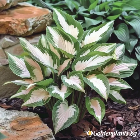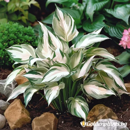 Декоративен многогодишен сорт с атрактивни двуцветни листа – снежнобял център и тъмнозелени краища. Растението образува гъста, ефектна туфа и е подходящо за сенчести градини, бордюри и контейнери. Отличава се с добра устойчивост и е чудесен акцент в декоративни насаждения.