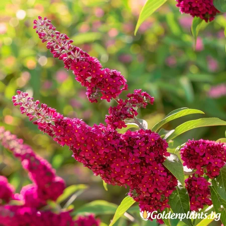 Декоративен храст, известен с атрактивните си, дълги съцветия в наситено пурпурночервен цвят (въпреки името, цветът е по-скоро пурпурен, отколкото червен). Привлича пеперуди и други опрашители, поради което често е наричан и „пеперуден храст".Идеален е за живи плетове, бордюри или като акцент в градината. За обилен цъфтеж се препоръчва ежегодна резитба напролет.
