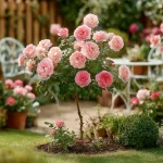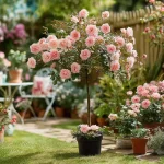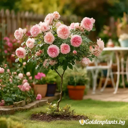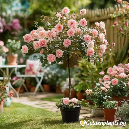 Елегантен сорт с плътни, кичести цветове в розово-прасковени нюанси, отличаваща се с дълъг и обилен цъфтеж. Формата на щамба придава височина и декоративен акцент, подходящ за алеи, входове и представителни зони. Растението е здраво, устойчиво и впечатлява с изискан романтичен вид през целия сезон.