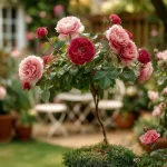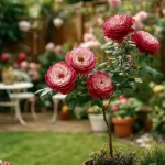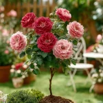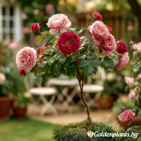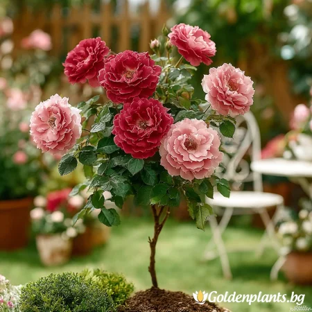 Впечатляваща роза с богата корона и множество дребни, червени цветове, събрани в ефектни големи съцветия. Цъфти обилно през целия сезон и придава елегантен акцент във всяка градина. Устойчива и лесна за поддръжка, идеална за алеи, входни пространства и декоративни композиции.