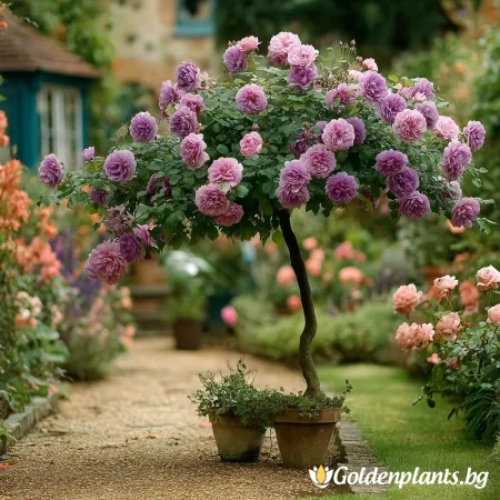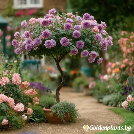 Изключително елегантна сортова роза с големи, лавандулово-лилави цветове и нежен аромат. Цъфти обилно през целия сезон, като образува плътна и ефектна корона. Отличава се с висока устойчивост на болести и е прекрасен акцент за алеи, входни пространства и декоративни насаждения.