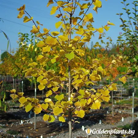 Декоративна форма на бялата бреза с ярко жълти до златисти листа, които създават силен сезонен ефект в градината. Растението е бързорастящо и оформя елегантна корона с характерна лющеща се кора. Подходящо е за самостоятелни акценти или паркови насаждения.