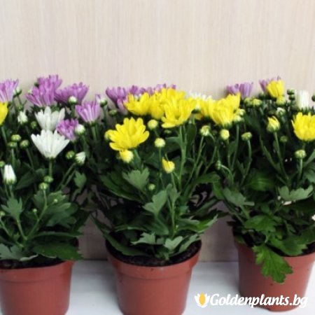 Хризантемата расте до около 30 см, съцветията са големи и ги има във всички багри. Ако се грижите правилно за растението, то ще цъфти до 2 месеца. У дома поставете саксията в хладна стая на перваз, където ще го грее слънце сутрин или привечер.
